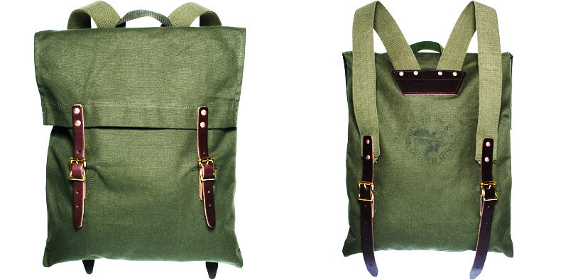 Kaufmann Mercantile’s take on the Duluth Scout pack: a couple inches wider and longer in size, an added top handle, copper/nickel hardware, and the brand patch removed. Available for pre-order.