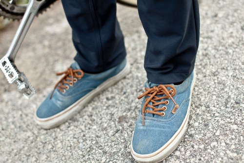 I’m wearing those same shoes. The denim Vans. Not the brake shoes.
